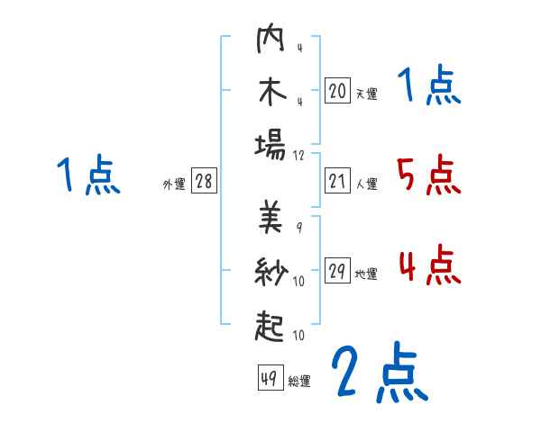 内木場美紗起さんの画数の鑑定結果