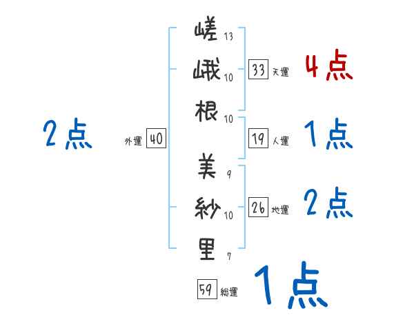 嵯峨根美紗里さんの画数の鑑定結果