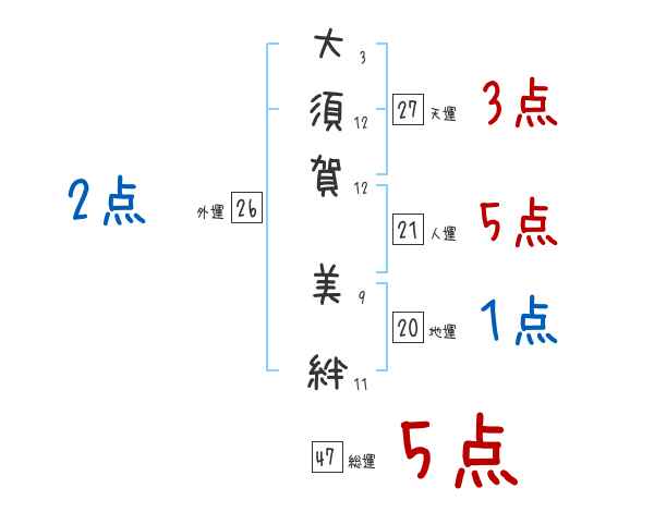 大須賀美絆さんの画数の鑑定結果