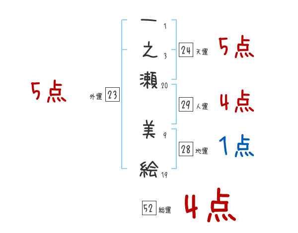外運![]() | 一之瀬美絵さんの外運は23画の5つ星!想像力に優れ活力がある。一代で成功し名誉を手に入れる。 生活面を象徴する運勢です。外部から受ける影響力を表し、結婚運、家庭運や職場、環境への順応性を表します。 |