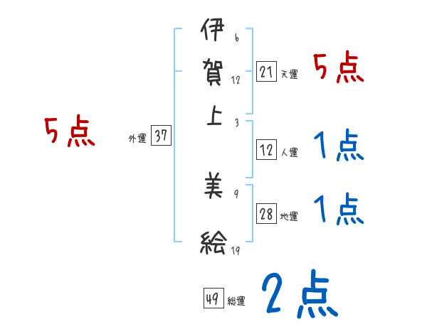 外運![]() | 伊賀上美絵さんの外運は37画の5つ星!努力家で順応性に優れる。現実的な考え方ができ忠実に物事をこなす。 生活面を象徴する運勢です。外部から受ける影響力を表し、結婚運、家庭運や職場、環境への順応性を表します。 |