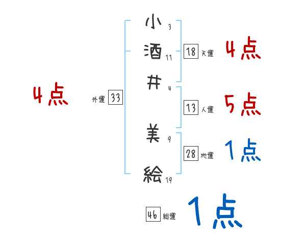 小酒井美絵さんの画数の鑑定結果