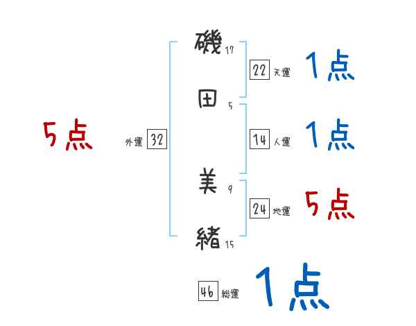 磯田美緒さんの画数の鑑定結果