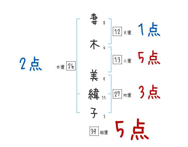 外運![]() | 妻木美緯子さんの外運は26画の2つ星!波瀾万丈かも。信頼できる人を大事にしましょう。 生活面を象徴する運勢です。外部から受ける影響力を表し、結婚運、家庭運や職場、環境への順応性を表します。 |