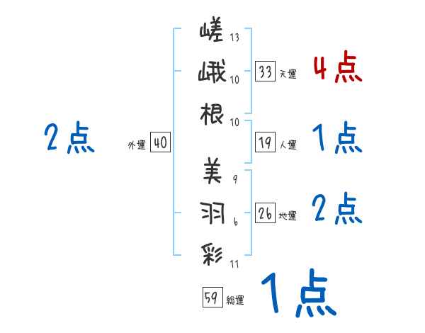 嵯峨根美羽彩さんの画数の鑑定結果