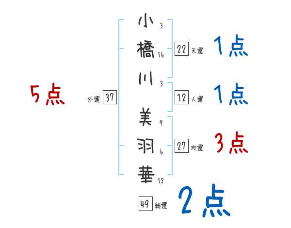 外運![]() | 小橋川美羽華さんの外運は37画の5つ星!努力家で順応性に優れる。現実的な考え方ができ忠実に物事をこなす。 生活面を象徴する運勢です。外部から受ける影響力を表し、結婚運、家庭運や職場、環境への順応性を表します。 |