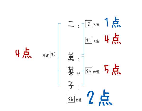 二美菜子さんの画数の鑑定結果