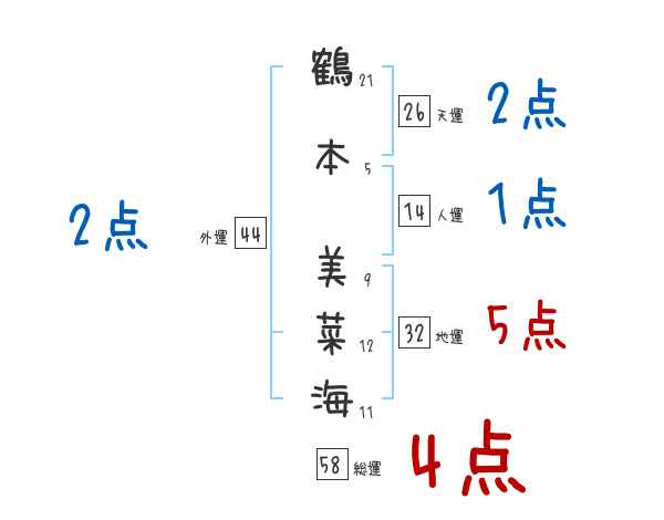 鶴本美菜海さんの画数の鑑定結果