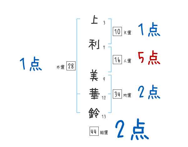 上利美華鈴さんの画数の鑑定結果