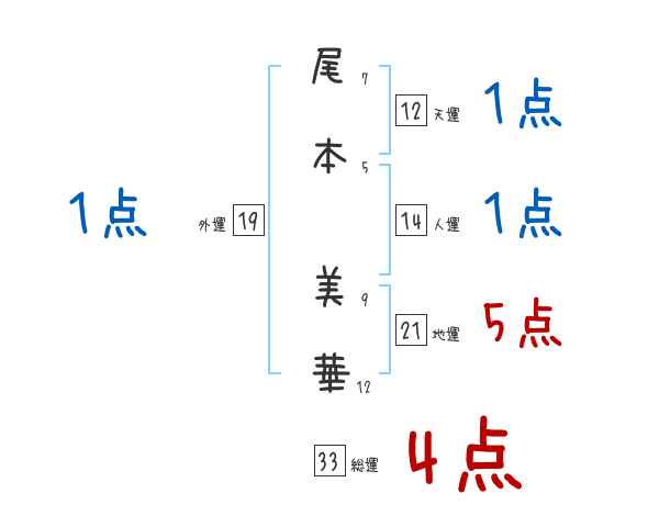 尾本美華さんの画数の鑑定結果