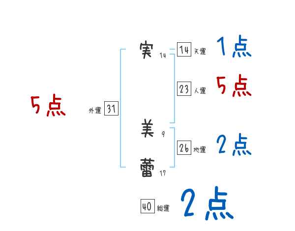 実美蕾さんの画数の鑑定結果