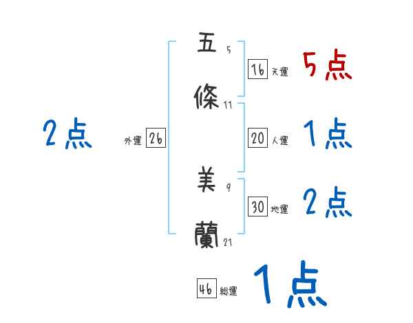 五條美蘭さんの画数の鑑定結果