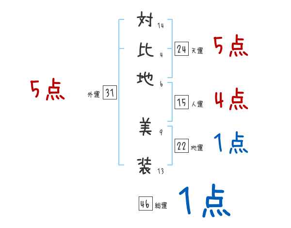 対比地美装さんの画数の鑑定結果