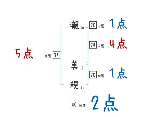 外運![]() | 瀧美規さんの外運は31画の5つ星!社交性があり判断力に優れる。順風満帆な人生で円満な生活。 生活面を象徴する運勢です。外部から受ける影響力を表し、結婚運、家庭運や職場、環境への順応性を表します。 |