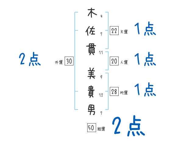 木佐貫美貴男さんの画数の鑑定結果