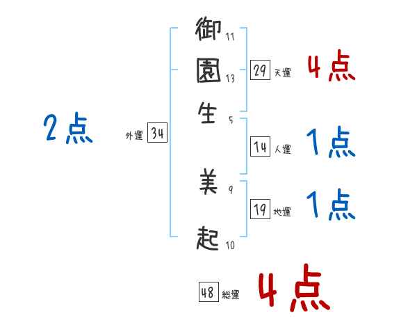 総運![]() | 御園生美起さんの総運は48画の4つ星!賢明な性格で人望が厚い。指導力があり多くの人に尊敬される。 あなたの人生を表す1番重要な運勢です。生涯を通じて影響する総合運となり、主に50歳以降の晩年期に影響を及ぼします。 |