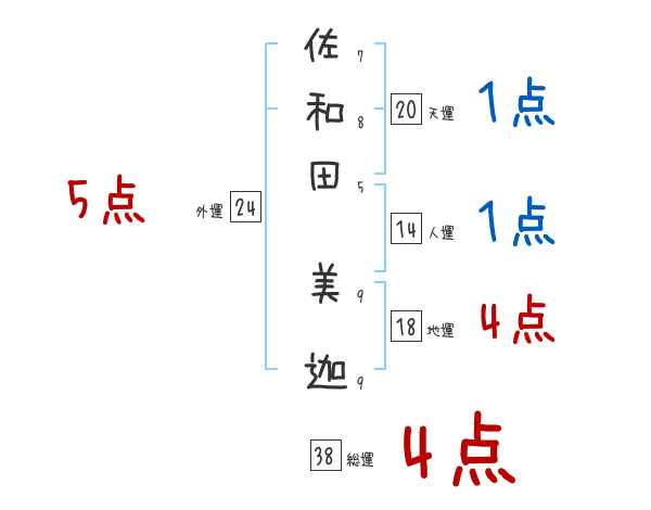 外運![]() | 佐和田美迦さんの外運は24画の5つ星!家庭運が良く順調な人生。金運にも恵まれる。 生活面を象徴する運勢です。外部から受ける影響力を表し、結婚運、家庭運や職場、環境への順応性を表します。 |