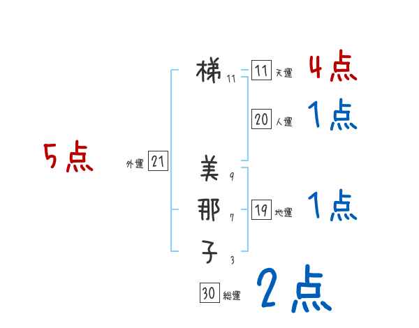 梯美那子さんの画数の鑑定結果