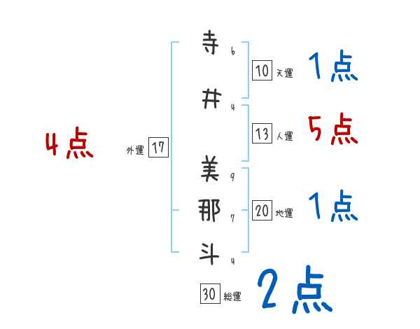 寺井美那斗さんの画数の鑑定結果
