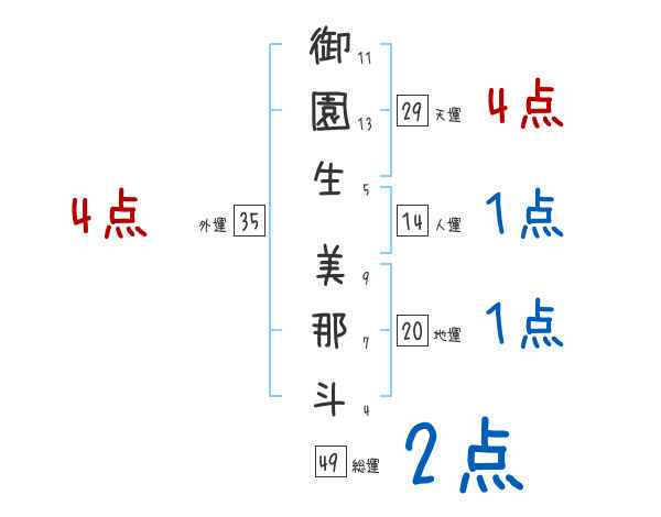 御園生美那斗さんの画数の鑑定結果