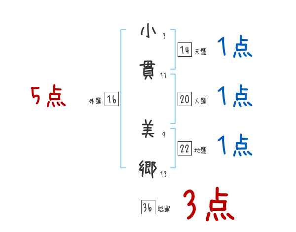 小貫美郷さんの画数の鑑定結果