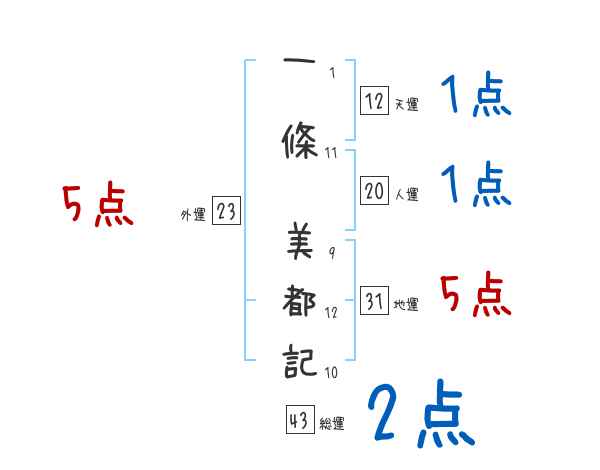 一條美都記さんの画数の鑑定結果