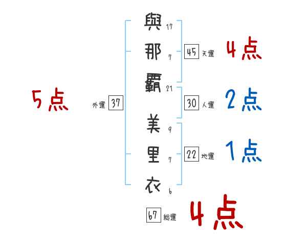 與那覇美里衣さんの画数の鑑定結果