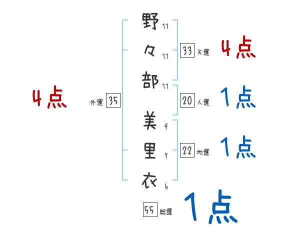 野々部美里衣さんの画数の鑑定結果
