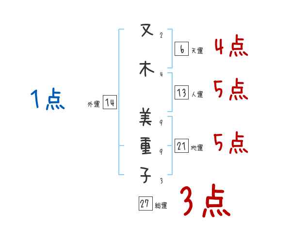又木美重子さんの画数の鑑定結果