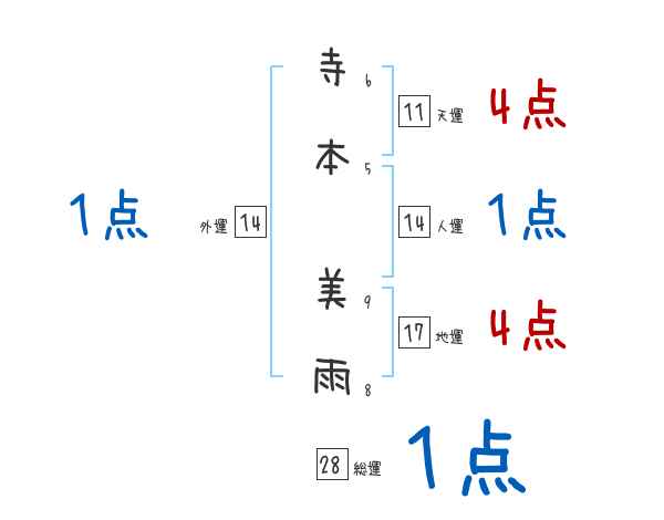 寺本美雨さんの画数の鑑定結果