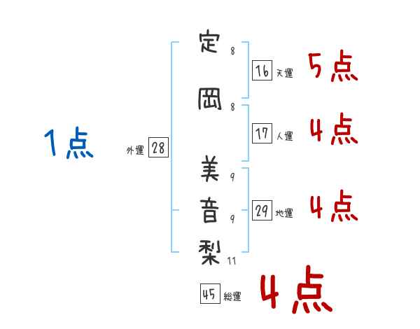 定岡美音梨さんの画数の鑑定結果