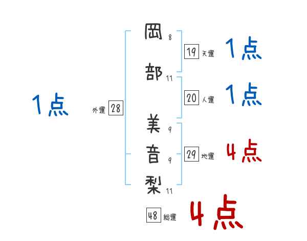 岡部美音梨さんの画数の鑑定結果