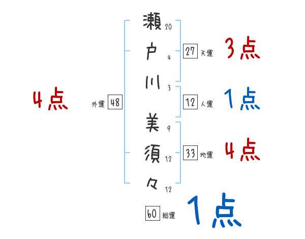 瀬戸川美須々さんの外運は48画の4つ星