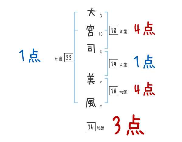 大宮司美風さんの画数の鑑定結果