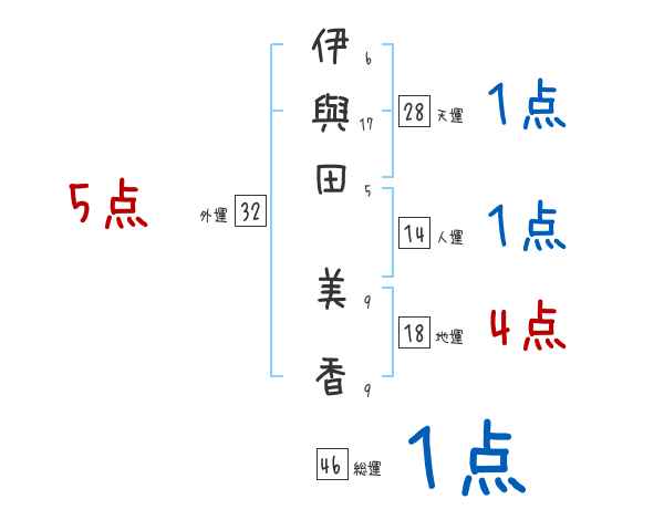外運![]() | 伊與田美香さんの外運は32画の5つ星!柔軟性があり成功する。チャンスが多く金運が良い。 生活面を象徴する運勢です。外部から受ける影響力を表し、結婚運、家庭運や職場、環境への順応性を表します。 |