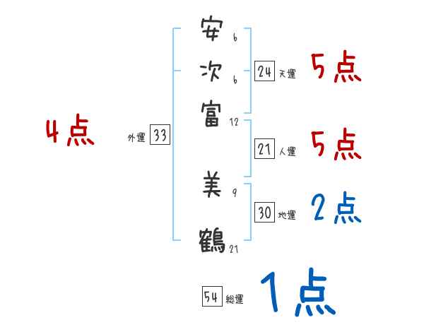 安次富美鶴さんの画数の鑑定結果
