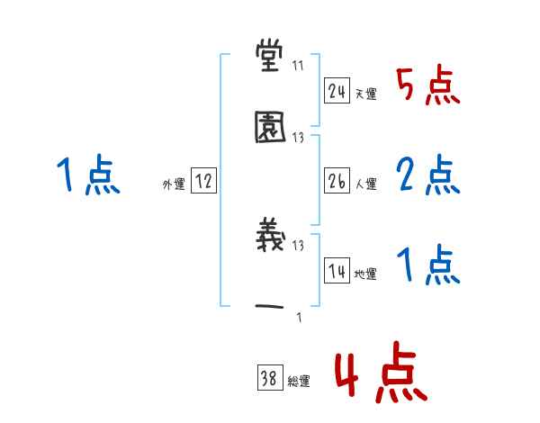 総運![]() | 堂園義一さんの総運は38画の4つ星!温厚な性格で技術的な才能を発揮する。職人的な仕事に向いている。 あなたの人生を表す1番重要な運勢です。生涯を通じて影響する総合運となり、主に50歳以降の晩年期に影響を及ぼします。 |