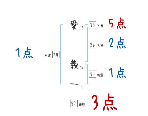 愛義一さんの画数の鑑定結果