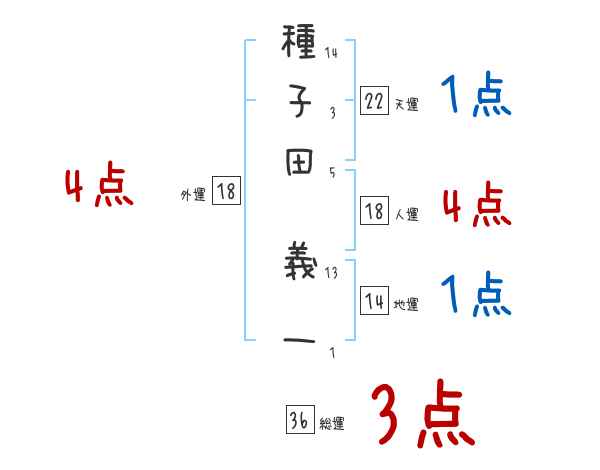 総運![]() | 種子田義一さんの総運は36画の3つ星!先見性が豊かです。多少神経質で苦労することも。 あなたの人生を表す1番重要な運勢です。生涯を通じて影響する総合運となり、主に50歳以降の晩年期に影響を及ぼします。 |