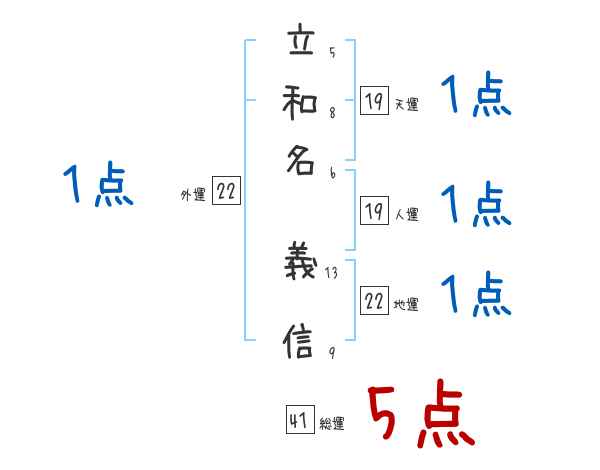 立和名義信さんの画数の鑑定結果
