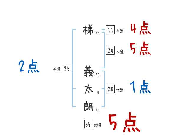 梯義太朗さんの画数の鑑定結果