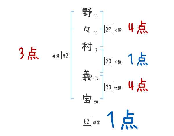 野々村義宝さんの画数の鑑定結果