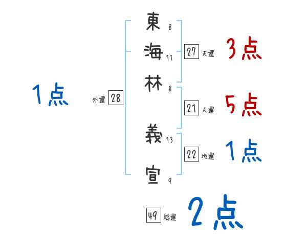 外運![]() | 東海林義宣さんの外運は28画の1つ星!家庭環境に注意。スポーツで活躍できる能力があるかも。 生活面を象徴する運勢です。外部から受ける影響力を表し、結婚運、家庭運や職場、環境への順応性を表します。 |