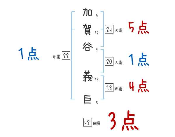 加賀谷義巨さんの画数の鑑定結果