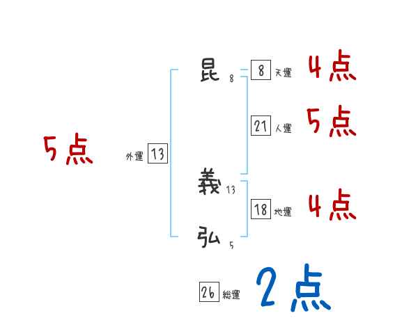 昆義弘さんの画数の鑑定結果