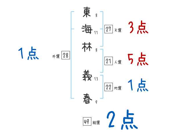 外運![]() | 東海林義春さんの外運は28画の1つ星!家庭環境に注意。スポーツで活躍できる能力があるかも。 生活面を象徴する運勢です。外部から受ける影響力を表し、結婚運、家庭運や職場、環境への順応性を表します。 |