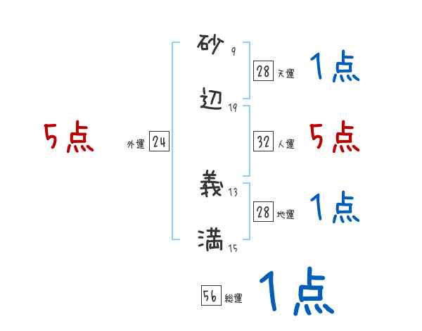 砂辺義満さんの画数の鑑定結果