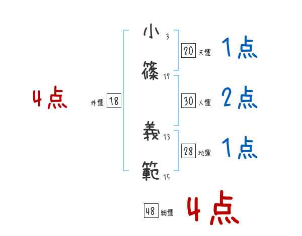 小篠義範さんの画数の鑑定結果