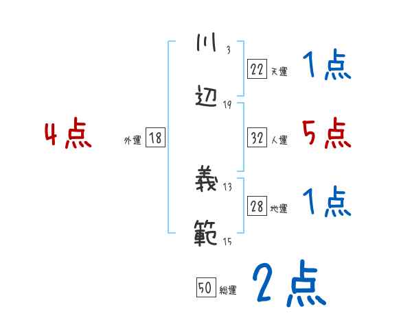 川辺義範さんの画数の鑑定結果