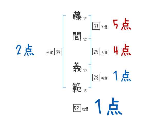 天運![]() | 藤間義範さんの天運は31画の5つ星!社交性があり判断力に優れる。順風満帆な人生で円満な生活。 家系が持つ宿命的な運勢を表します。祖先から受け継いだ苗字ですので自分の力が及びません。家柄を象徴します。 |